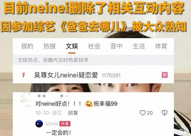 NaiNai还是年轻,这种删除的行为反而让网友们有了更大胆的猜测。 还有网友跑到吴尊那里告状。 当年,吴尊带着NaiNai上综艺就发现,吴尊是个女儿奴,当时NaiNai喜欢一个摄影小哥哥都把吴尊紧张的不得了。