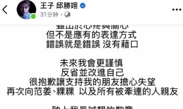 甚至王子还在范姜彦丰晒出的照片下@对方妻子。 如今那些互动在现在看来别有一番意思。 王子的道歉声明中也表示,自己不是小三,是在他们已经协议离婚的时候才产生的感情。